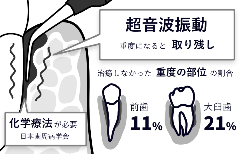 しかし、歯周ポケットの奥深くに潜む細菌にはアプローチしにくい。