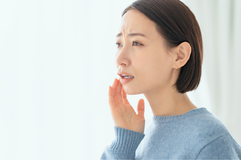 更年期に入ると、エストロゲンの分泌が減少し、唾液の分泌が減ることがあります。唾液は口腔内を清潔に保つ役割を果たしていますが、唾液が減少すると口内が乾燥しやすくなり、細菌が繁殖しやすくなります。このため、口臭が強くなり、歯周病のリスクも高まります。